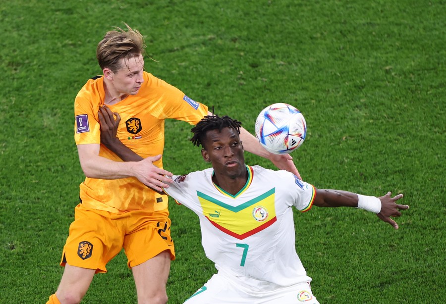 Frenkie de Jong (L) of the Netherlands vies with Senegal's Nicolas Jackson during their Group A encounter. (Xinhua/Jia Haocheng)