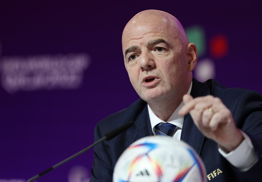 FIFA President Gianni Infantino speaks during a media briefing at the 2022 FIFA World Cup Main Media Centre in Doha, Qatar, Nov. 19, 2022. (Xinhua/Jia Haocheng)