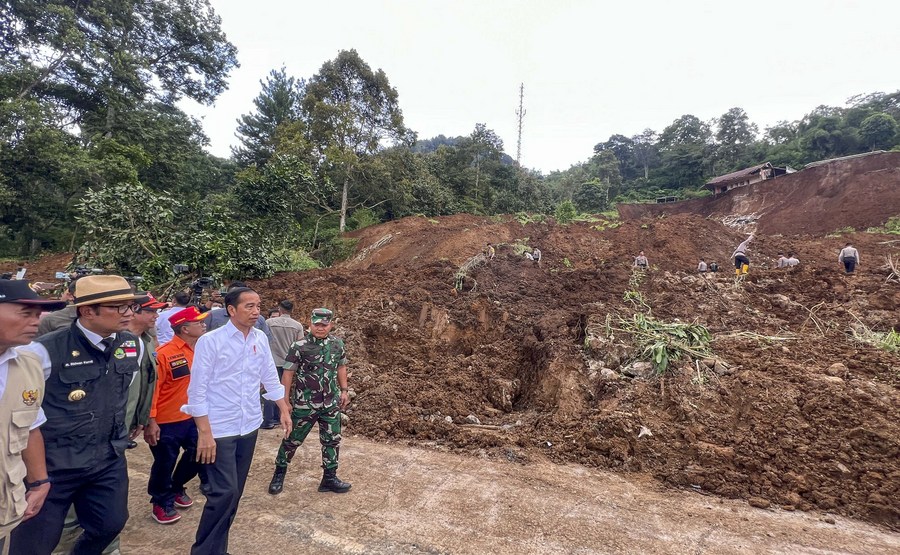 Indonesian President Joko Widodo visits a village affected by an earthquake in Cianjur, West Java, Indonesia, Nov. 22, 2022.(Laily Rachev/Presidential Press Bureau/Handout via Xinhua)