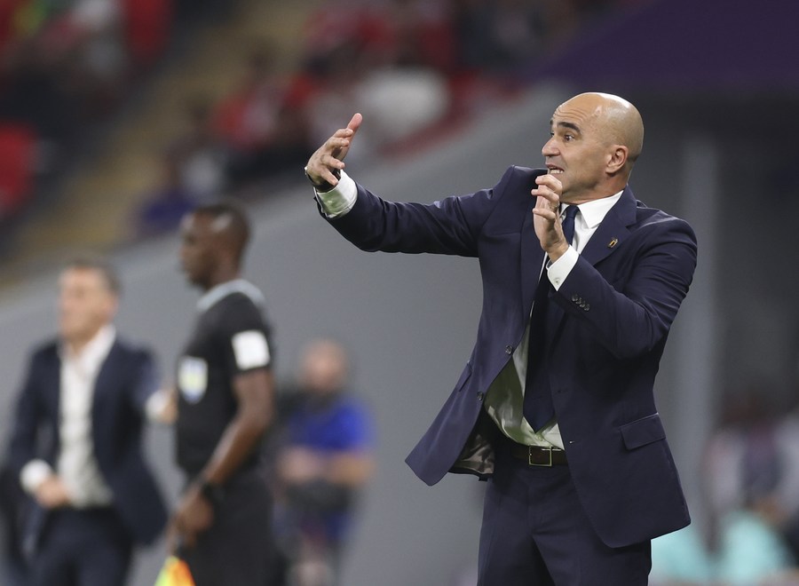 Roberto Martinez, head coach of Belgium, gestures during the Group F match between Belgium and Canada at the 2022 FIFA World Cup at Ahmad Bin Ali Stadium in Al Rayyan, Qatar, Nov. 23, 2022. (Xinhua/Han Yan)■