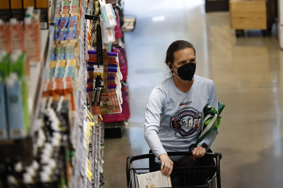 A customer shops at a supermarket in Washington, D.C., the United States, on Oct. 28, 2022. (Photo by Ting Shen/Xinhua)