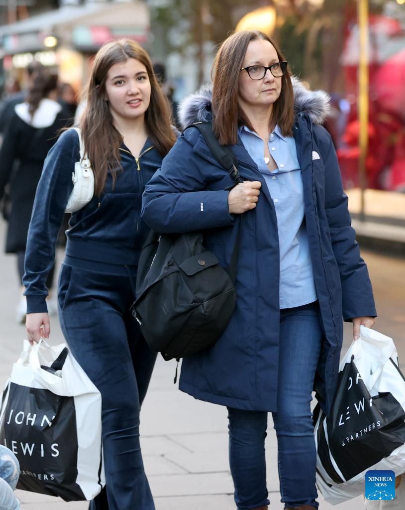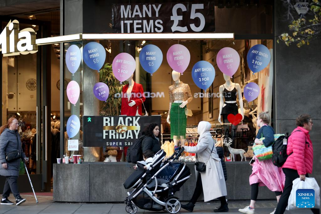 Shoppers walk in Oxford Street during Black Friday sales in London, Britain, Nov. 25, 2022. (Xinhua/Li Ying)