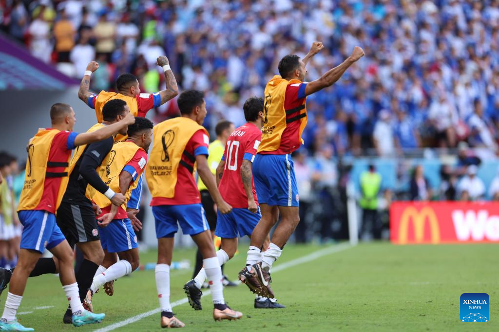 DOHA, Nov. 27 (Xinhua) -- Costa Rica bounced back from a humiliating opening game defeat against Spain to overcome Japan 1-0 at Ahmad Bin Ali Stadium on Sunday.