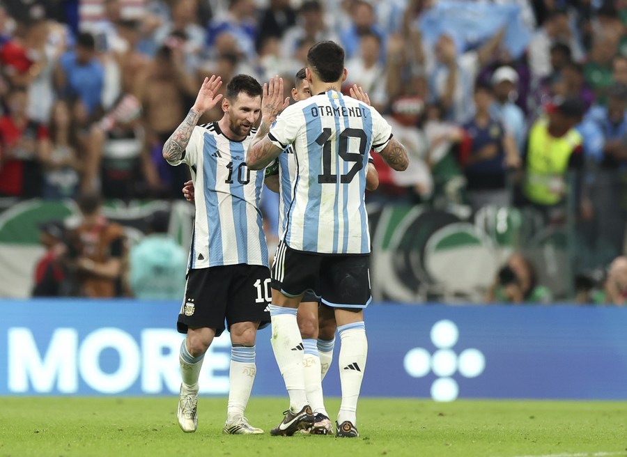 DOHA, Nov. 27 (Xinhua) -- Second half goals from Lionel Messi and Enzo Fernandez gave Argentina a 2-0 win against Mexico on Saturday and banished the team's fears of an early exit from the World Cup.