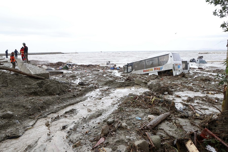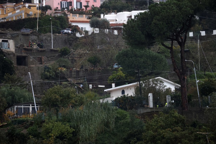 This photo taken on Nov. 26, 2022 shows the general view after a landslide on the island of Ischia, Italy. (Str/Xinhua)