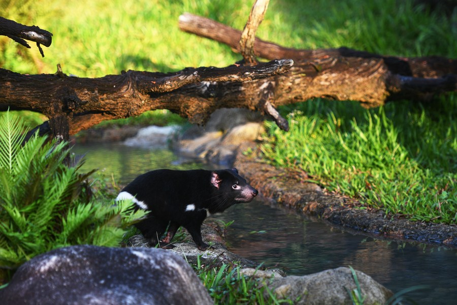 One of the four Tasmanian Devils from Australia is seen on exhibit for the first time in Singapore's Night Safari on Nov 29, 2022. (Photo by Then Chih Wey/Xinhua)