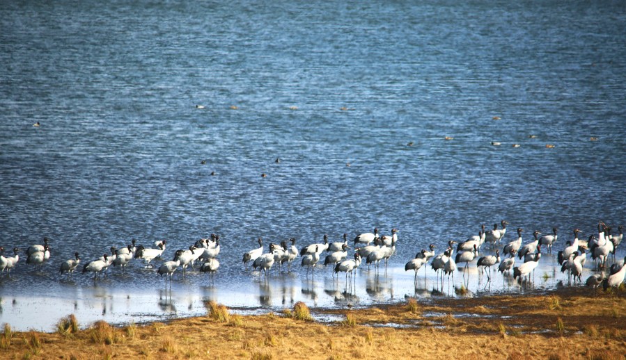 During the past three years, an average of over 1,500 black-necked cranes were spotted arriving at the reserve for wintering, while the numbers of other migratory birds were also on the rise thanks to these local conservation efforts. ■