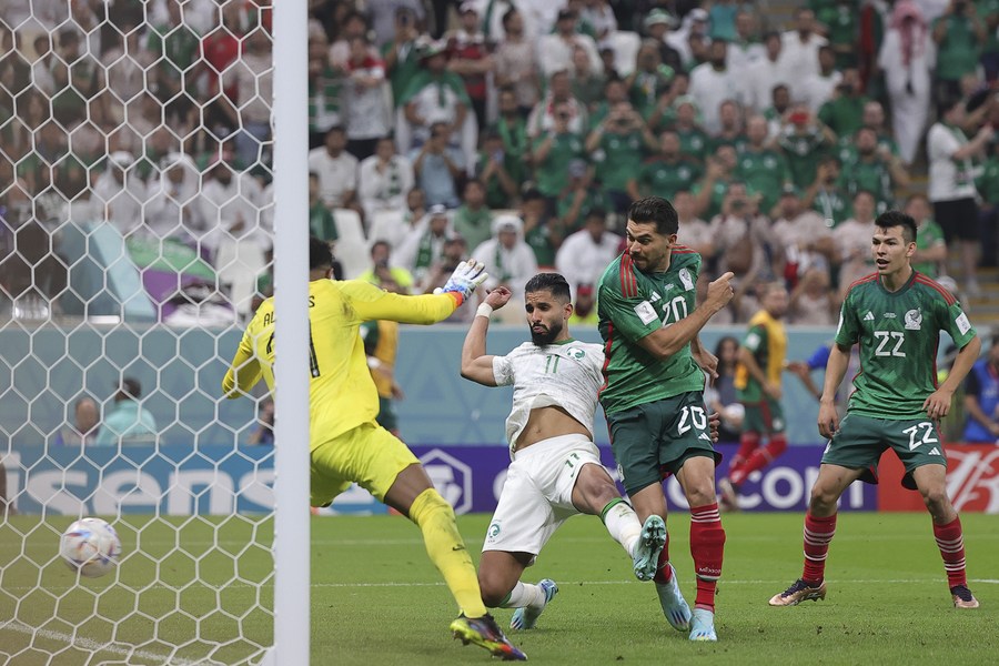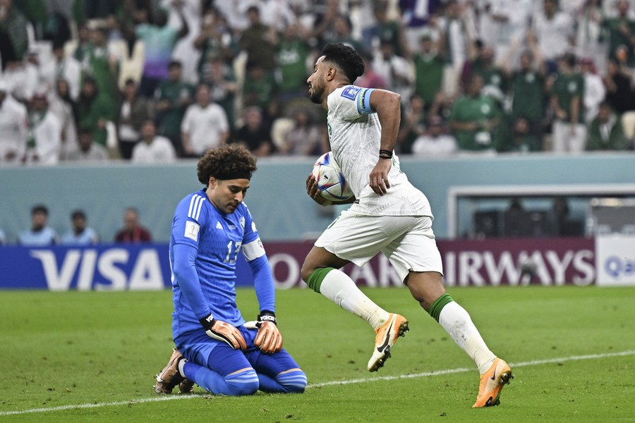 Salem Aldawsari (above) of Saudi Arabia scores during the Group C match between Saudi Arabia and Mexico at the 2022 FIFA World Cup at Lusail Stadium in Lusail, Qatar, Nov. 30, 2022. (Xinhua/Xu Zijian)