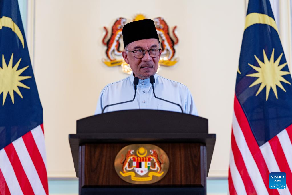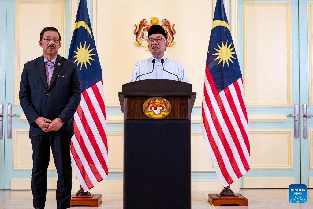 Malaysian Prime Minister Anwar Ibrahim speaks during a press conference in Putrajaya, Malaysia, Dec. 2, 2022. Anwar unveiled his cabinet on Friday, naming two deputy prime ministers in an effort to better represent both halves of the country. (Sadiq Asyraf/Prime Minister's Office of Malaysia/Handout via Xinhua)