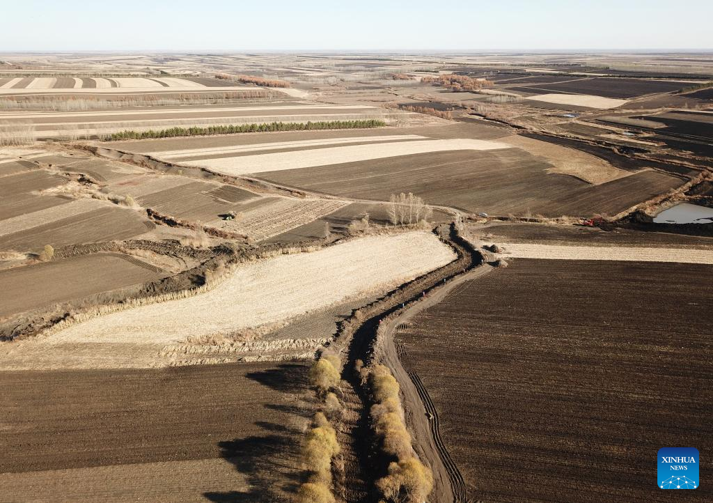 This aerial photo taken on Oct. 18, 2022 shows a site of a soil erosion restoring project at Sandao Township, Baiquan County, northeast China's Heilongjiang Province. Dec. 5 marks World Soil Day, a day designated by the UN to highlight the importance of healthy soils and to advocate sustainable management of soil resources. (Xinhua/Wang Jianwei)