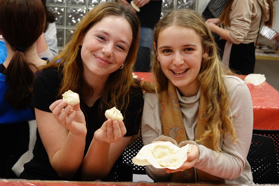 Photo taken shows Israeli students with self-made dumplings during the "Confucius Day" Chinese cultural festival at the Hebrew University of Jerusalem, on Dec. 5, 2022. (Xinhua/Wang Zhuolun) ■