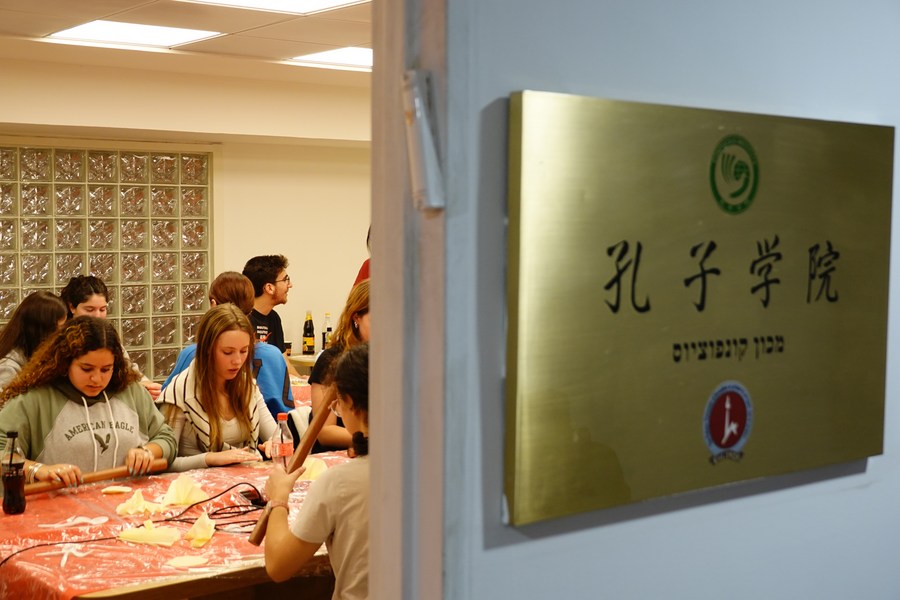 Israeli students learn to make dumplings during the "Confucius Day" Chinese cultural festival at the Hebrew University of Jerusalem, on Dec. 5, 2022. (Xinhua/Wang Zhuolun)