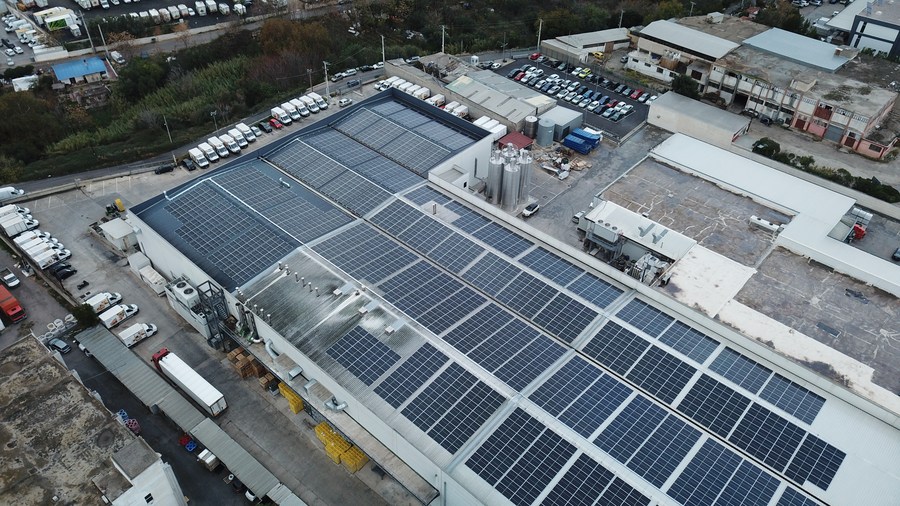 "Solar panel installation with the principle of net metering enables us to utilize 100 percent of the power generated by the panels," George Delis, factory manager, told Xinhua.