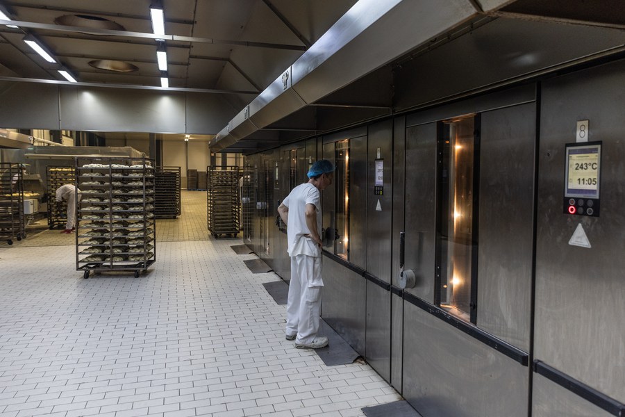 Staff members work at the Stergiou Family S.A. factory in Acharnes, a suburb of Athens, Greece, on Nov. 29, 2022. (Photo by Lefteris Partsalis/Xinhua)