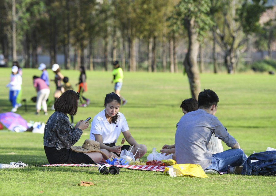 People enjoy their leisure time on Guangyang Isle in southwest China's Chongqing, Nov. 2, 2022. (Xinhua/Wang Quanchao)
