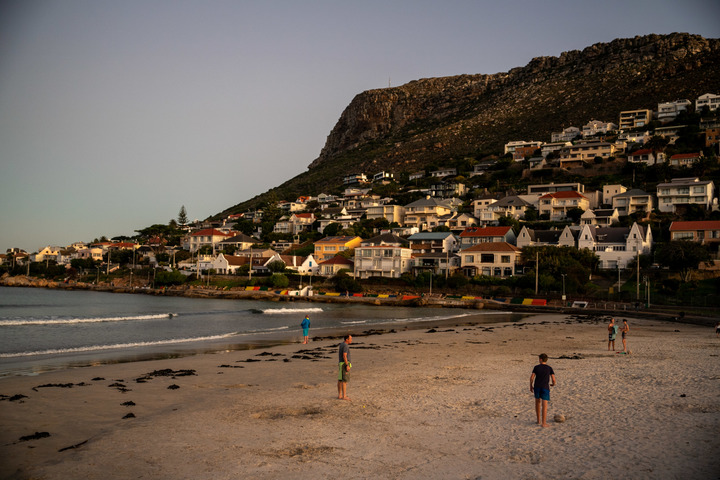 People spend time at Fish Hoek Beach after sunset during a power cut in Cape Town, South Africa, on June 29, 2022. (Xinhua/Lyu Tianran)