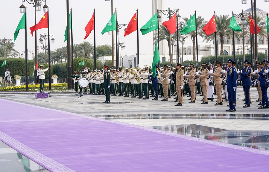 RIYADH, Dec. 8 (Xinhua) -- Visiting Chinese President Xi Jinping on Thursday attended a welcoming ceremony held by Saudi Crown Prince and Prime Minister Mohammed bin Salman Al Saud on behalf of King Salman bin Abdulaziz Al Saud at the royal palace in the capital Riyadh.