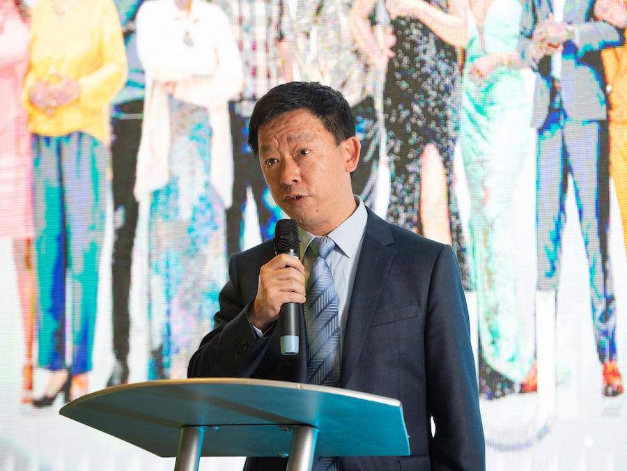 Wang Qianxu, chief executive officer of StarTimes Kenya, speaks during the launching ceremony of the Swahili drama series KIU, in Nairobi, Kenya, Dec. 8, 2022. (Xinhua/Li Yahui)