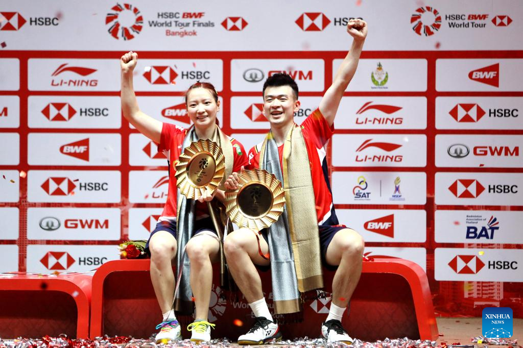 BANGKOK, Dec. 11 (Xinhua) -- Chinese shuttlers won three titles in the season finale of the Badminton World Federation (BWF) World Tour Finals which ended here on Sunday.