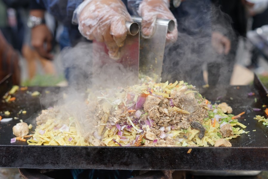 A chef of a food booth cooks during the 2022 International Food Festival in Hanoi, Vietnam on Dec. 11, 2022. (Xinhua/Hu Jiali)