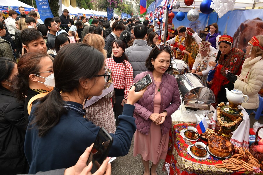 People take part in the 2022 International Food Festival in Hanoi, Vietnam on Dec. 11, 2022. (Xinhua/Hu Jiali)