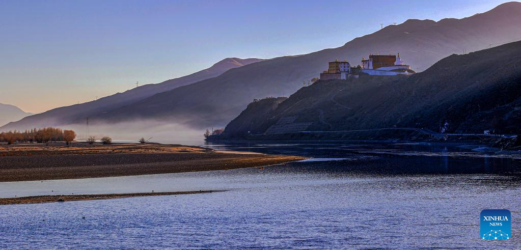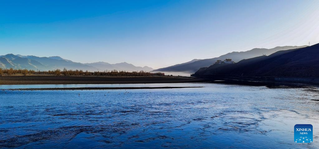 This mobile phone photo taken on Dec. 11, 2022 shows the scenery of Quxu section of the Yarlung Zangbo River in Quxu County, southwest China's Tibet Autonomous Region. (Xinhua/Shen Hongbing)