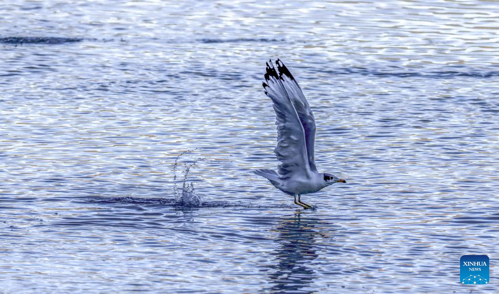 This photo taken on Dec. 11, 2022 shows birds at Quxu section of the Yarlung Zangbo River in Quxu County, southwest China's Tibet Autonomous Region. (Xinhua/Huang Yaoman)