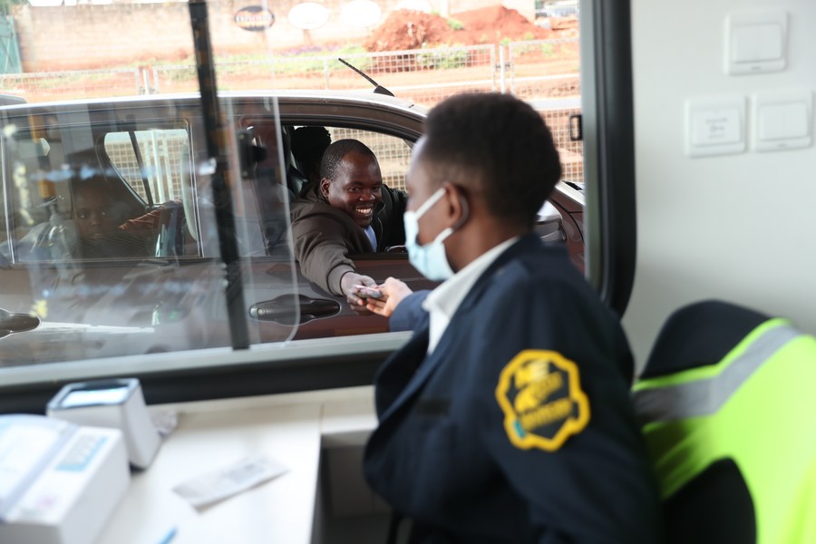 A driver pays a fee at a toll station on the Nairobi Expressway, financed and built by China Road and Bridge Corporation, in Nairobi, Kenya, May 14, 2022. (Xinhua/Long Lei)