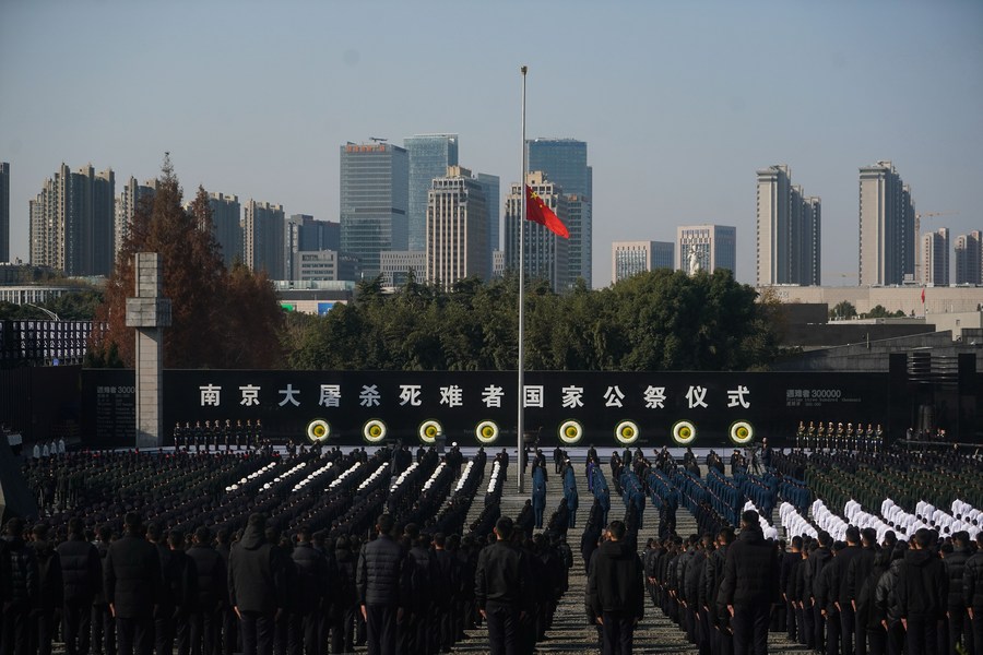 China holds its eighth national memorial ceremony for the Nanjing Massacre victims at the Memorial Hall of the Victims in Nanjing Massacre by Japanese Invaders in Nanjing, capital of east China's Jiangsu Province, Dec. 13, 2021. (Xinhua/Ji Chunpeng)