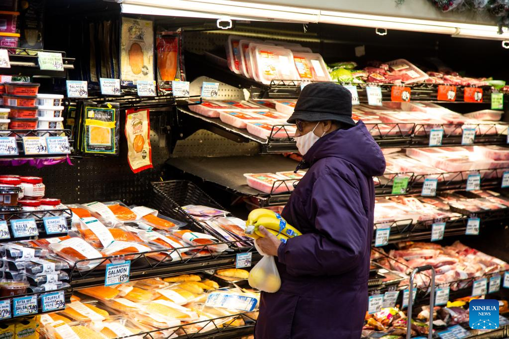 A customer shops at a grocery store in the Brooklyn borough of New York, the United States, Dec. 13, 2022. U.S. prices rose less than analysts' expectations in November, signaling that surging inflation may be slightly tamping down. The consumer price index (CPI), a measure of U.S. services and goods, climbed a mere 0.1 percent from October, and rose 7.1 percent from the same time last year, according to data released Tuesday from the U.S. Department of Labor. (Photo by Michael Nagle/Xinhua)