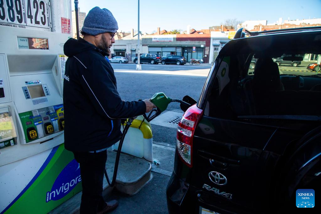 A man pumps gas at a gas station in the Brooklyn borough of New York, the United States, Dec. 13, 2022. U.S. prices rose less than analysts' expectations in November, signaling that surging inflation may be slightly tamping down. The consumer price index (CPI), a measure of U.S. services and goods, climbed a mere 0.1 percent from October, and rose 7.1 percent from the same time last year, according to data released Tuesday from the U.S. Department of Labor. (Photo by Michael Nagle/Xinhua)