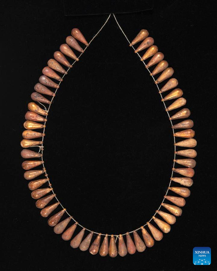 CAIRO, Dec. 13 (Xinhua) -- An Egyptian-British archaeological mission discovered a collection of gold jewelry south of the capital Cairo, said the Egyptian Ministry of Tourism and Antiquities on Tuesday.