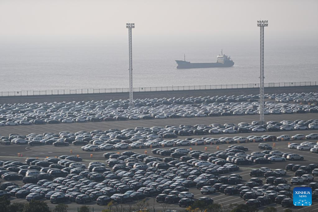 (221214) -- NINGBO, Dec. 14, 2022 (Xinhua) -- This photo taken on Dec. 13, 2022 shows vehicles at Meidong Dock of the Ningbo-Zhoushan Port in east China's Zhejiang Province. The cargo and container throughput of Ningbo-Zhoushan Port registered year-on-year growth of 3.41 percent and 7.84 percent respectively in the first 11 months in 2022. The port saw its cargo throughput reach 1.16 billion tons while the container throughput achieved 31.26 million twenty-foot equivalent units (TEUs). (Xinhua/Huang Zongzhi)