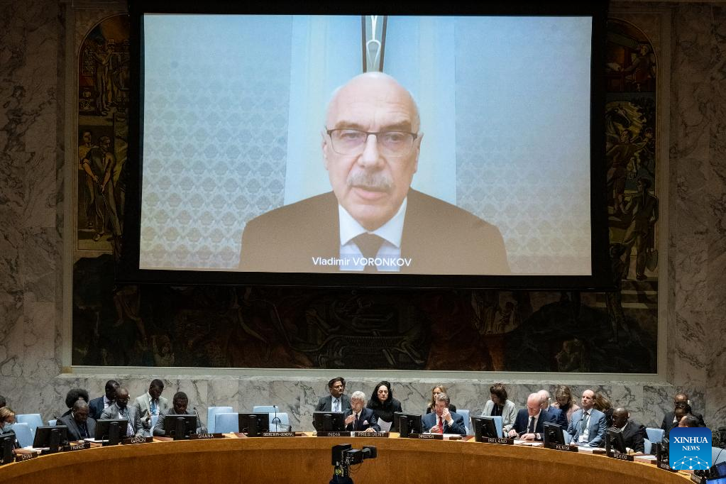 UN Undersecretary-General Vladimir Voronkov (on the screen) speaks via a video link at a Security Council meeting on threats to international peace and security caused by terrorist acts, at the UN headquarters in New York, on Dec. 15, 2022. Vladimir Voronkov said on Thursday that addressing the complex conditions driving terrorism requires multi-faceted and integrated responses. (Eskinder Debebe/UN Photo/Handout via Xinhua)
