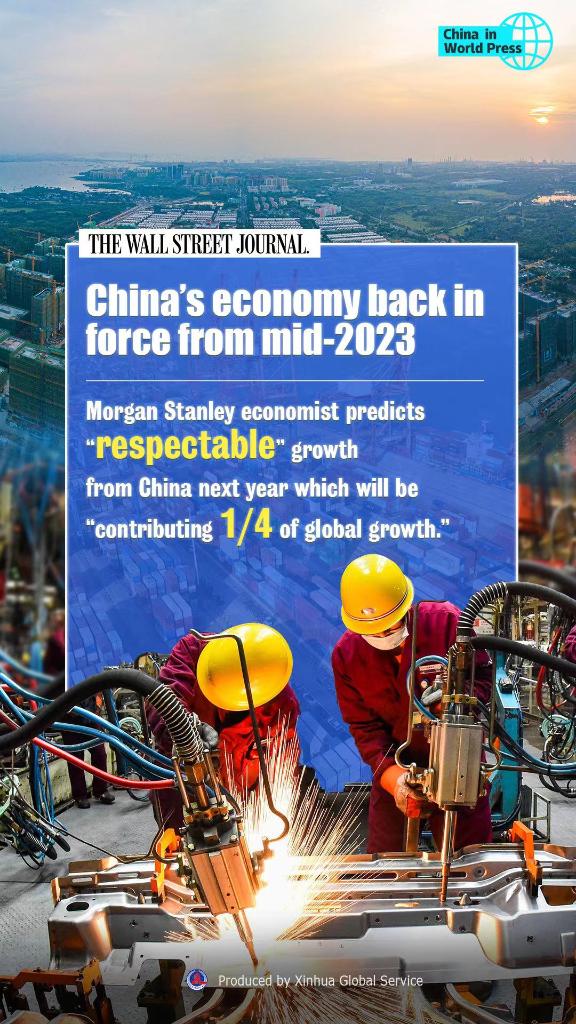 According to Morgan Stanley, the world's second-largest economy will be back in force from mid-2023, The Wall Street Journal has reported. China's economic growth will contribute a quarter of global growth, said Morgan Stanley's chief China economist.