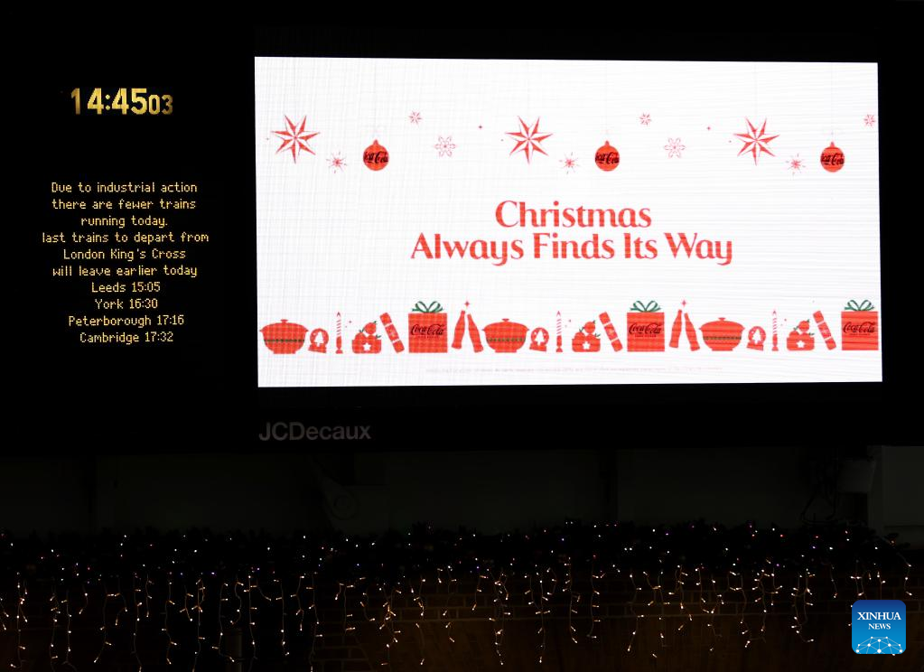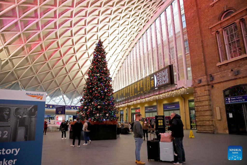 People are seen at King's Cross railway station in London, Britain, Dec. 17, 2022. The United Kingdom (UK) faces weeks of massive strikes during the Christmas season by transport and postal workers, nurses, and border guards. A wave of industrial action began on Tuesday, with more than 40,000 members of the National Union of Rail, Maritime and Transport Workers (RMT) walking out for 48 hours. Three more weeks of disruption are set to follow. (Xinhua/Li Ying)
