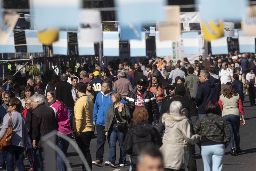 People tour a fair in the city of Buenos Aires, capital of Argentina, on August 14, 2022. (Xinhua/Martin Zabala)