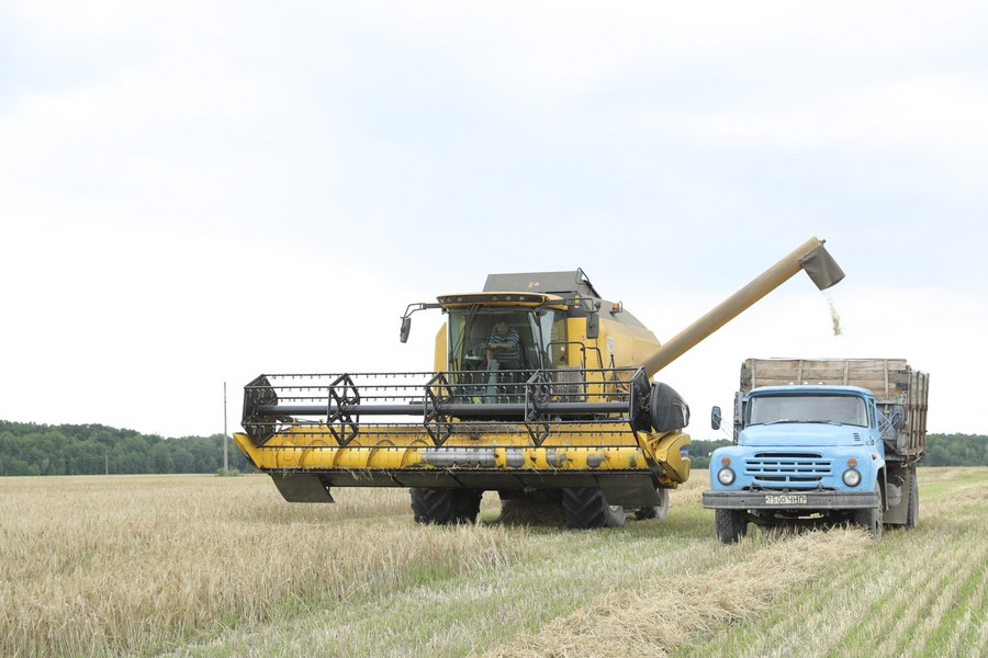 A harvester operates at a farm in Chernihiv, Ukraine, July 30, 2022. (Xinhua/Li Dongxu)