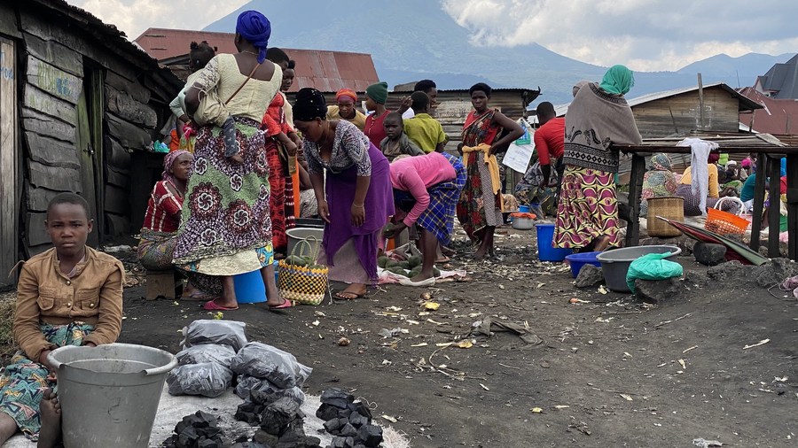 People are seen at a makeshift market in Bunagana, a border town in the northeastern Democratic Republic of the Congo (DRC), on Oct. 1, 2022. (Xinhua/Alain Uaykani)