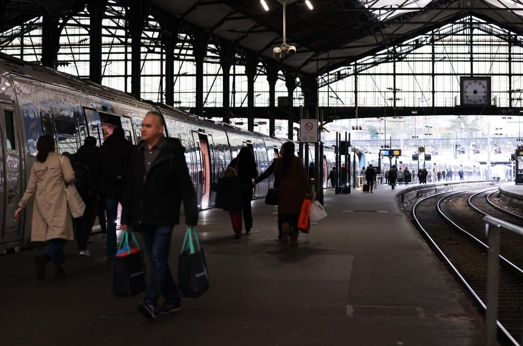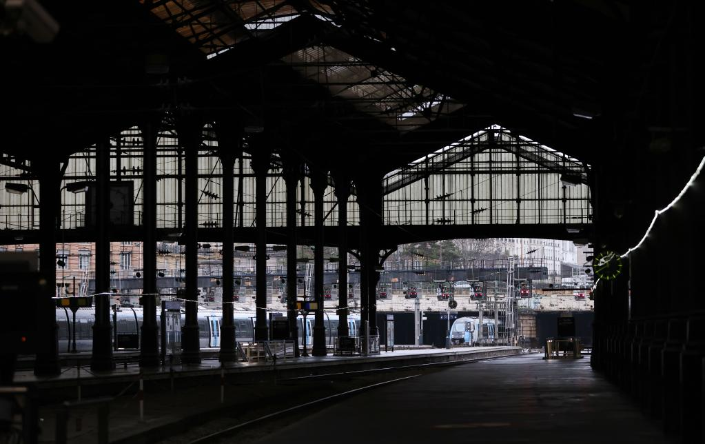 Passengers walk on the platform at Gare Saint Lazare train station in Paris, France, Dec. 23, 2022. (Xinhua/Gao Jing)
