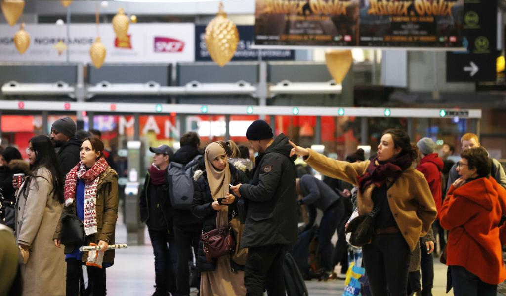 Passengers are seen at Gare Saint Lazare train station in Paris, France, Dec. 23, 2022. (Xinhua/Gao Jing)