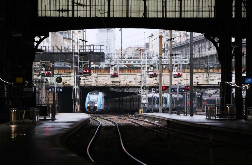 A train enters Gare Saint Lazare train station in Paris, France, Dec. 23, 2022. (Xinhua/Gao Jing)