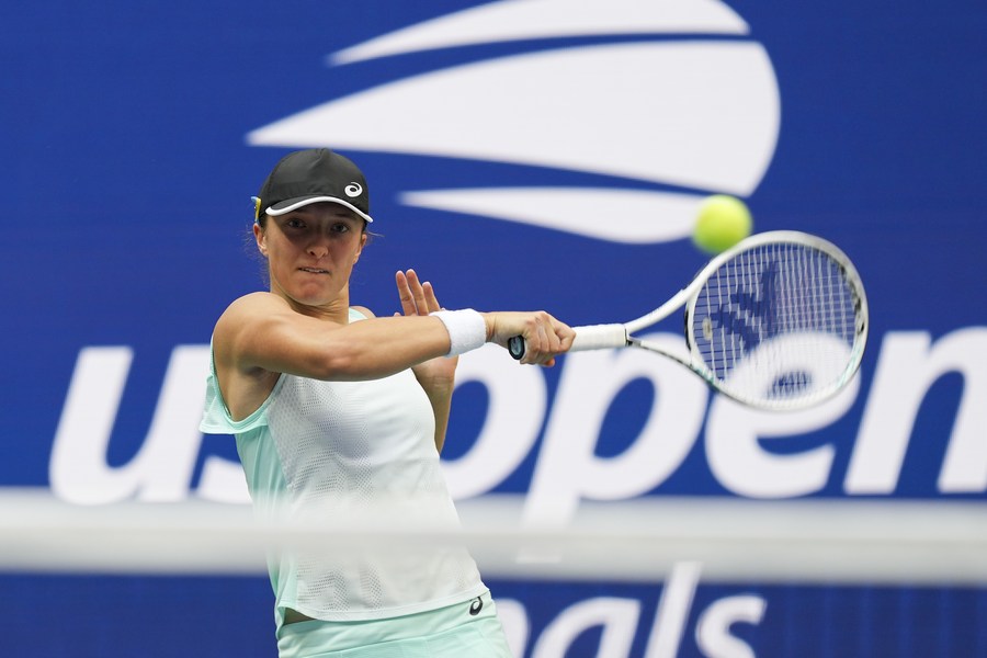 Iga Swiatek competes during the women's singles final against Ons Jabeur of Tunisia at the 2022 U.S. Open tennis tournament in New York, the United States, on Sept. 10, 2022. (Xinhua/Liu Jie)