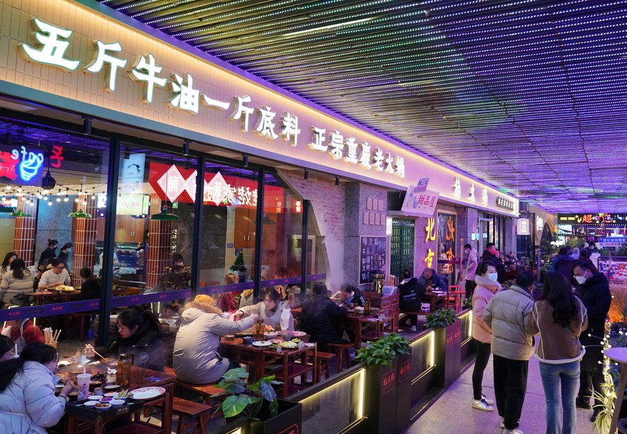 Customers have meals at a restaurant of a business center in Beijing, capital of China, Dec. 25, 2022. (Xinhua/Zhang Chenlin)