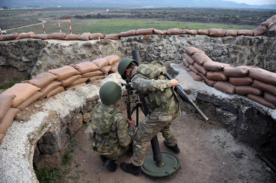Soldiers are seen on the Syrian-Turkish border in Gaziantep province, Türkiye, on Dec. 2, 2022. (Photo by Mustafa Kaya/Xinhua)