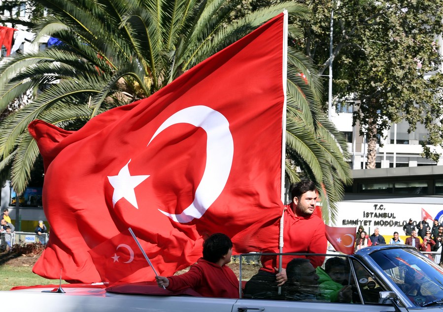 People attend a celebration marking the Republic Day in Istanbul, Türkiye, Oct. 29, 2022. Türkiye celebrated the 99th anniversary of the foundation of its republic on Saturday. (Xinhua/Shadati)