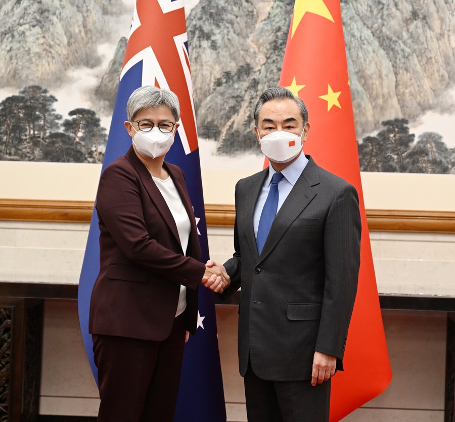 Chinese State Councilor and Foreign Minister Wang Yi, also a member of the Political Bureau of the Communist Party of China Central Committee, and Australian Foreign Minister Penny Wong hold the sixth China-Australia Foreign and Strategic Dialogue in Beijing, capital of China, Dec. 21, 2022. (Xinhua/Zhang Ling)