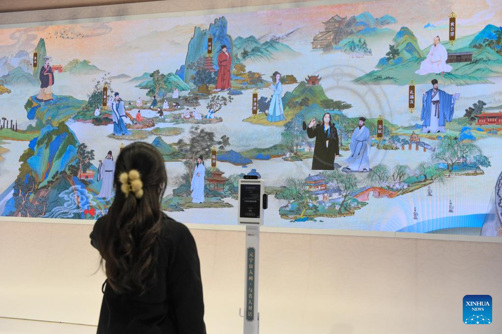 Visitors look at an interactive digital painting exhibit at the 18th China (Shenzhen) International Cultural Industries Fair in Shenzhen, south China's Guangdong Province, Dec. 29, 2022.