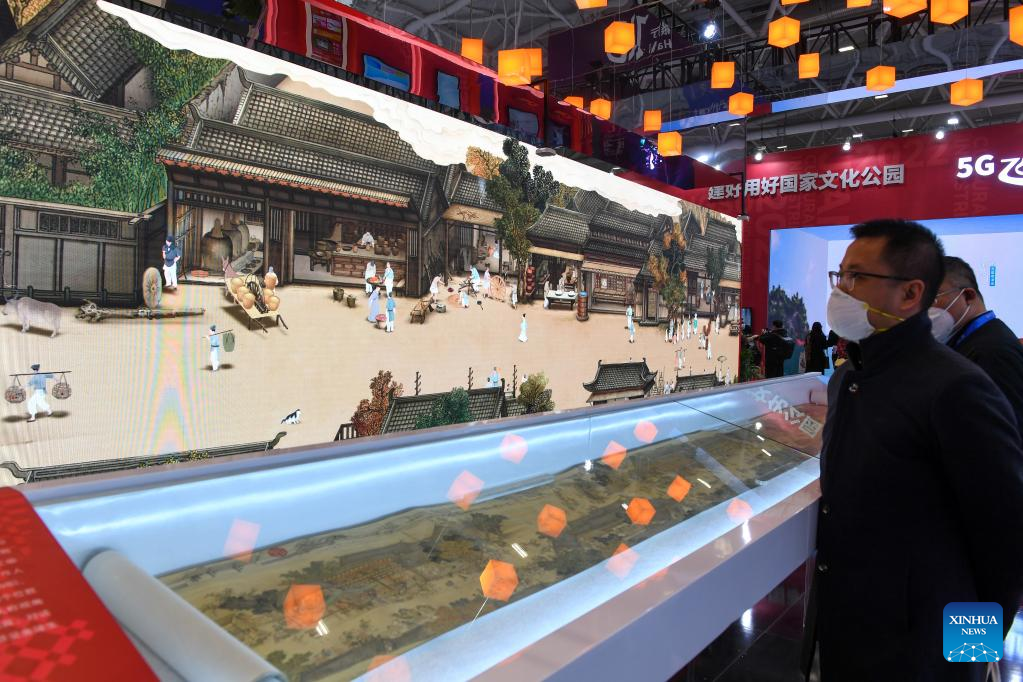 People look at a painting exhibit at the 18th China (Shenzhen) International Cultural Industries Fair in Shenzhen, south China's Guangdong Province, Dec. 29, 2022.