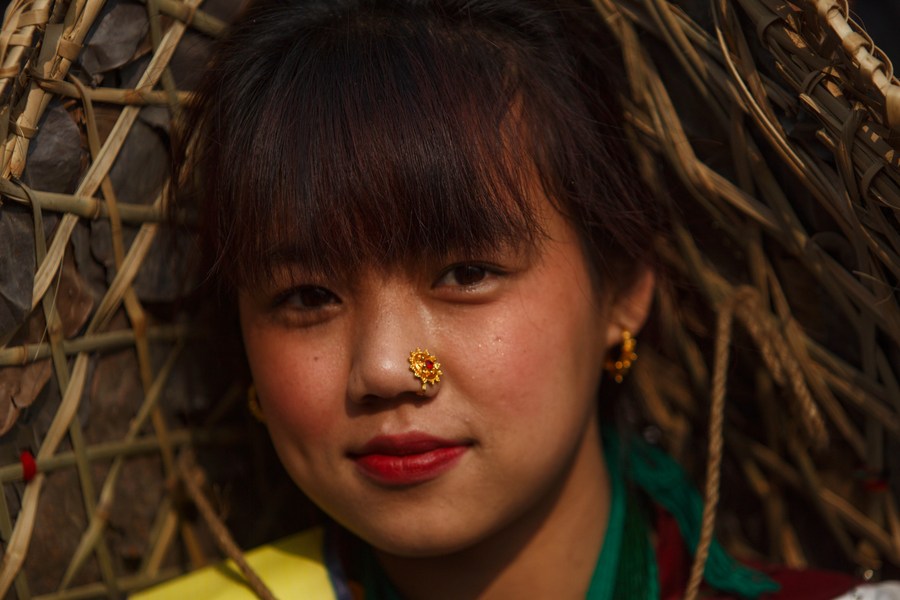 A girl from the Gurung community in traditional attire takes part in a rally to celebrate Tamu Lhosar in Kathmandu, Nepal, on Dec. 30, 2022. (Photo by Sulav Shrestha/Xinhua)